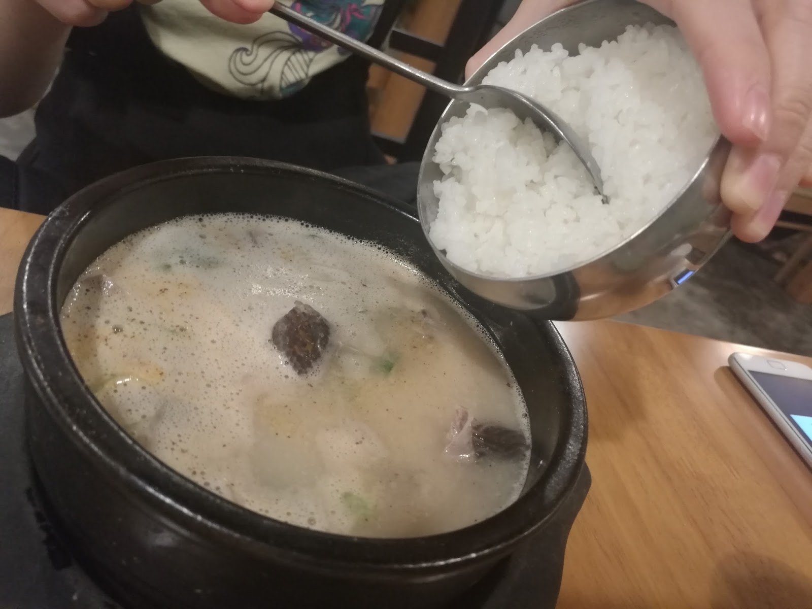 湯內有非常多料,包括一堆豬雜、血腸、豬血等,果然嚐到了韓國的味道呀!飯后還會附上一小份西瓜,一頓十分滿足的中午飯呀!埋單也就600銖左右,感覺性價比還不錯,強烈推薦!温馨提示一下附近就是TERMINAL 21,吃太撐可以去SHOPPING消化一下哈。