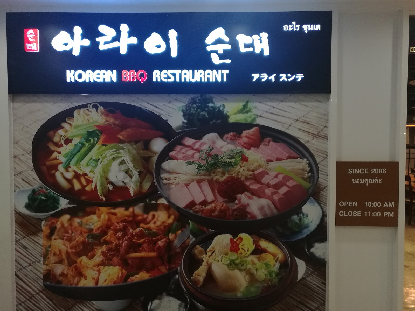 曼谷真是一個不缺美食的城市,尤其是日韓料理,很多都很正宗,因為老板大多是日本人或韓國人,個人感覺,絕對比我在內地香港澳門吃的好吃,包括原材料及烹調手法,因都能讓你感受到原始的味道。今次介紹這家店叫อะไรซุนเด,這家店是老婆一位韓國朋友極力推薦,就餐期間,看見來客幾乎全是韓國人,老板當然也是韓國人,體現了這間店的正宗。因為老婆之前在韓國生活過一段時間,特別喜歡韓國菜,想來好久了,哈。飯店位於Sukhumvit路的TIME SQUARE 4樓,靠近BTS ASOK站,招牌長這樣子﹕