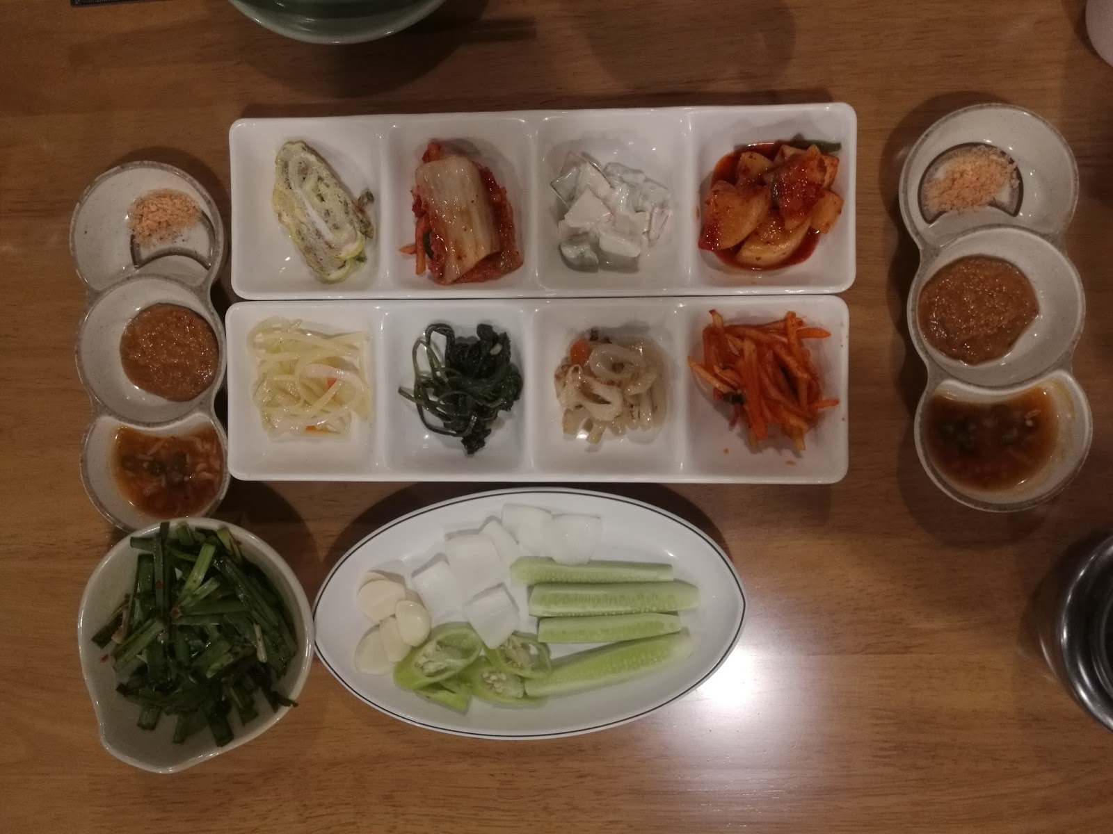 這家店招牌是豬血湯,所以我和老婆一人一碗,沒有再點其它了,除非是特別能吃,否則份量絕對夠了,因為韓國料理都會先來一堆前菜。