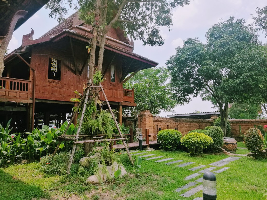 Ayutthaya retreat其實是一家酒店,建築主要是採用木結構,裝潢非常泰式,周圍放置了很多泰國的傢俱擺件,內部亦種了非常多的植物,一進去就能感受濃濃的泰國味,大家都不禁想起《天生一對》的場景。