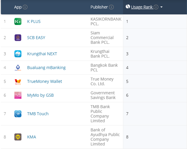 另外,通過GOOGLE APP的排名,可以看到泰國銀行是主流力量,但其實由於LINE歸類為社交類軟件,不計入此排名,但實際影響力也是非常大,本文后面會提及。
