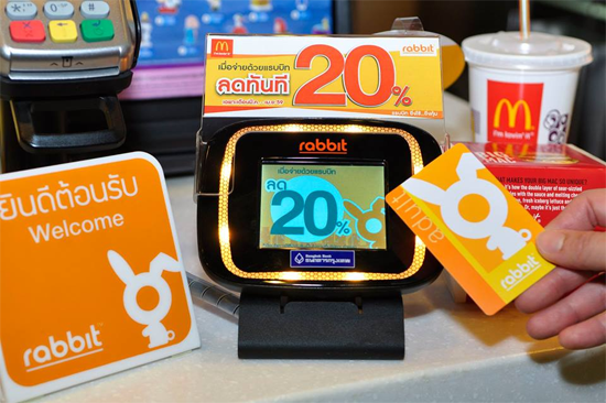 | 商家若要接受RABBIT卡必須另外安裝專屬卡機,但在泰國仍然發展迅速 |
